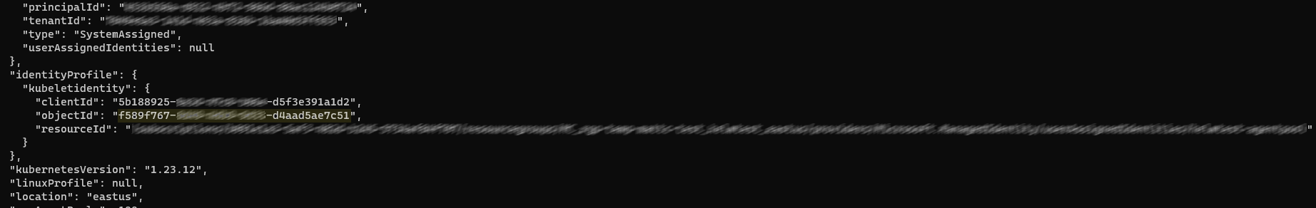 • First, retrieve the object ID of the kubelet identity: